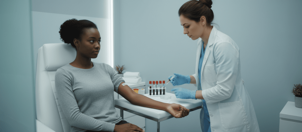 A Premium Complete Blood Test gives a broad, in‑depth overview of your health by checking thyroid function, key vitamins and minerals, liver and kidney performance, full iron stores and inflammation levels. It also includes a detailed hormone panel, cholesterol and blood sugar markers, uric acid for gout risk, and a comprehensive blood‑cell profile to highlight issues affecting energy, immunity and overall wellbeing.